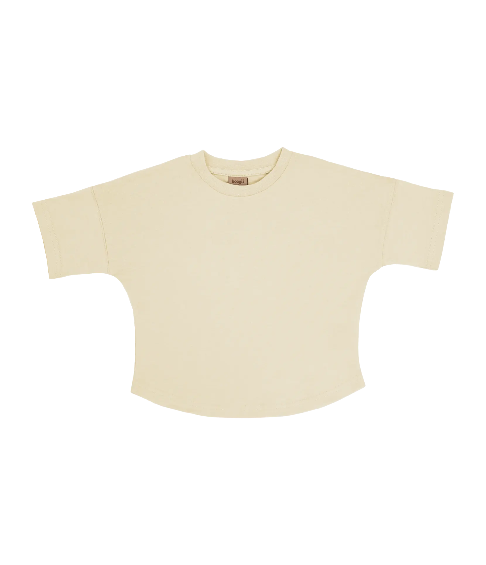 The Yoghurt Turtle Tee has a high cut collar an oversized fit and a round edge at the bottom. The material is smooth and falls effortlessly on the body. A contrasting jogger set will be a perfect match. Made from 100% organic cotton and available in three colors.